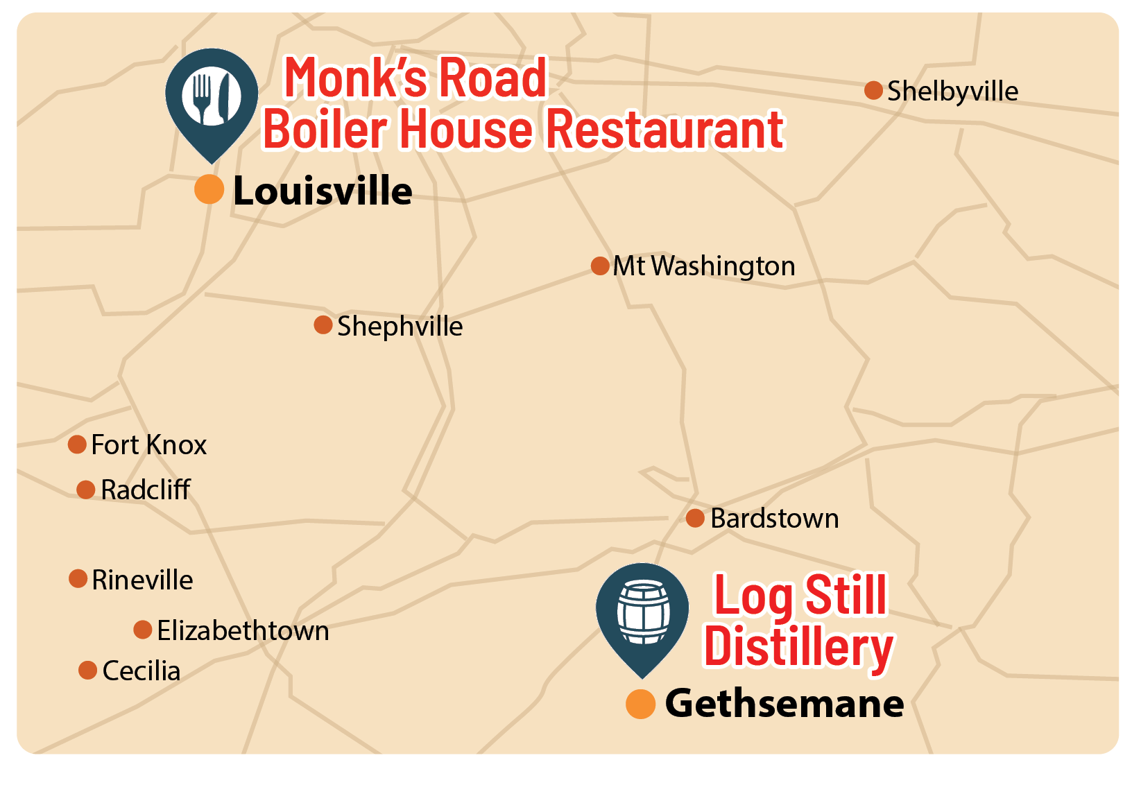 Though Monk’s Road Boiler House calls downtown Louisville home, the heart of Log Still Distillery beats a little farther south in Gethsemane, Kentucky, where our bourbons are born, music fills the air, and hospitality lingers like a good finish. When your travels take you there, you’ll find The Amp, The Legacy, and our Bed & Breakfasts waiting to welcome you.